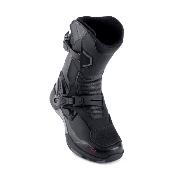 Vattentäta och ventilerande motorcykelstövlar med teknisk design, avsedda för året runt-användning.