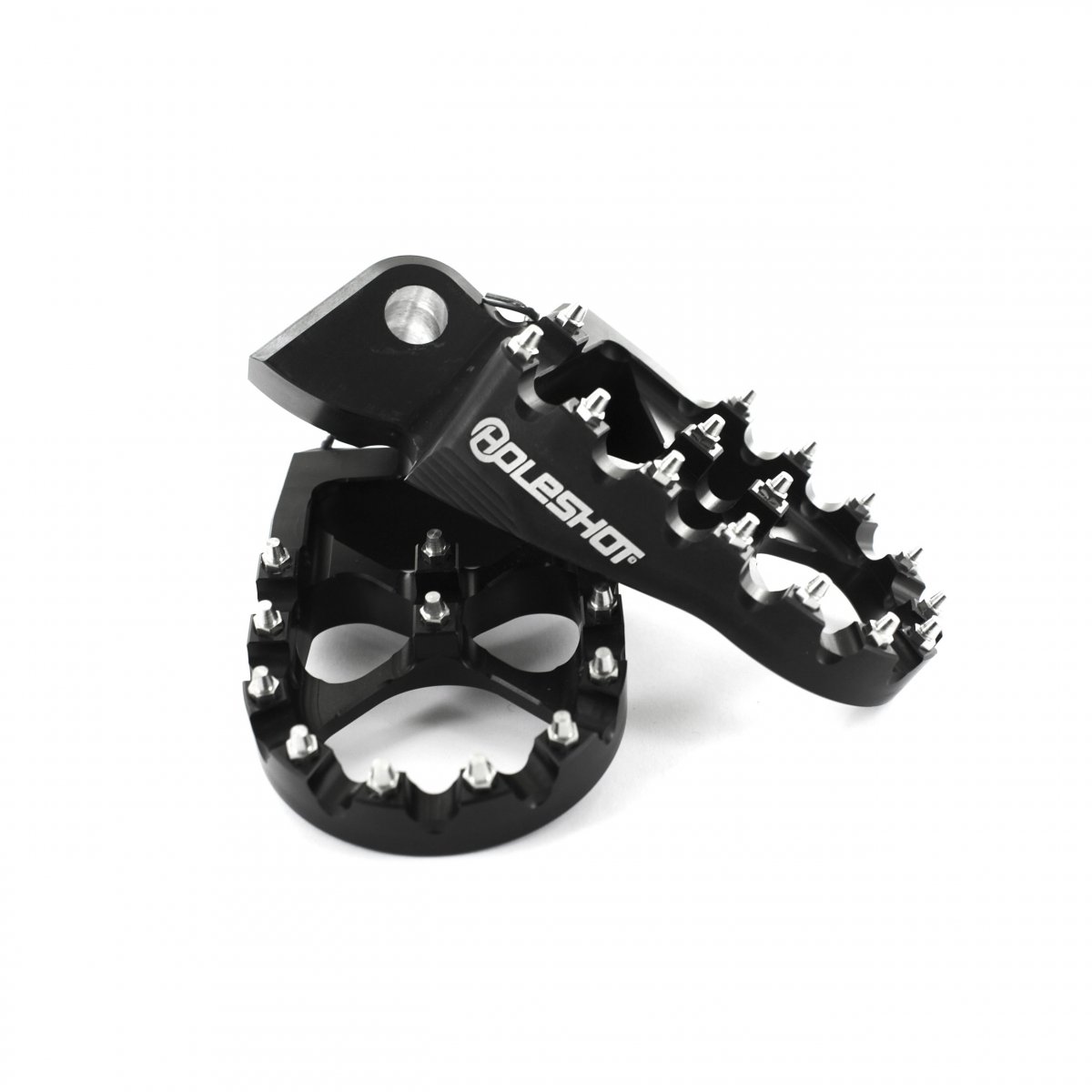 Tillverkade av CNC-fräst 7075-T6 aluminium, är dessa fotpinnar både lätta i vikt och tåliga. De har en laseretsad Holeshot-logo och utbytbara piggar av slitstark metall som ger extra grepp när du behöver det som mest.