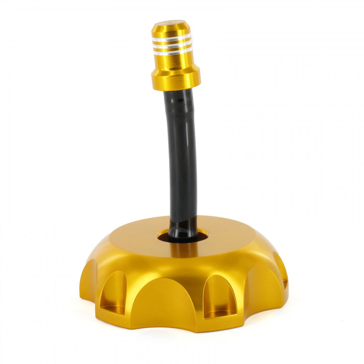 Guld eloxerat tanklock i aluminium.