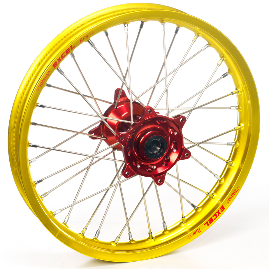 Haan Wheels, Komplett Hjul, 1,60, 21", FRAM, GUL RÖD, Honda 02-25 CRF450R, 26 CRF450R, 95-07 CR250R, 04-26 CRF250R, 19 CRF250X,